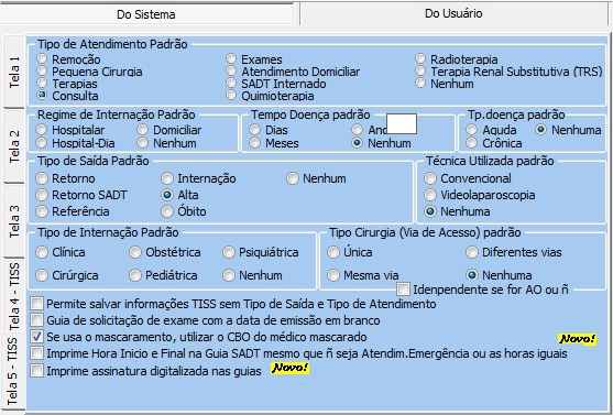 | Tipo de atendimento padrão | permite definir o tipo de atendimento padrão na guia. |