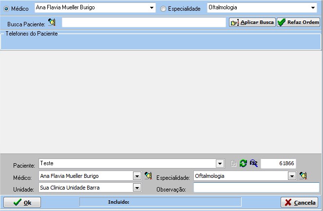 | 2º Buscar ou incluir o paciente, pressione o botão Ok. |