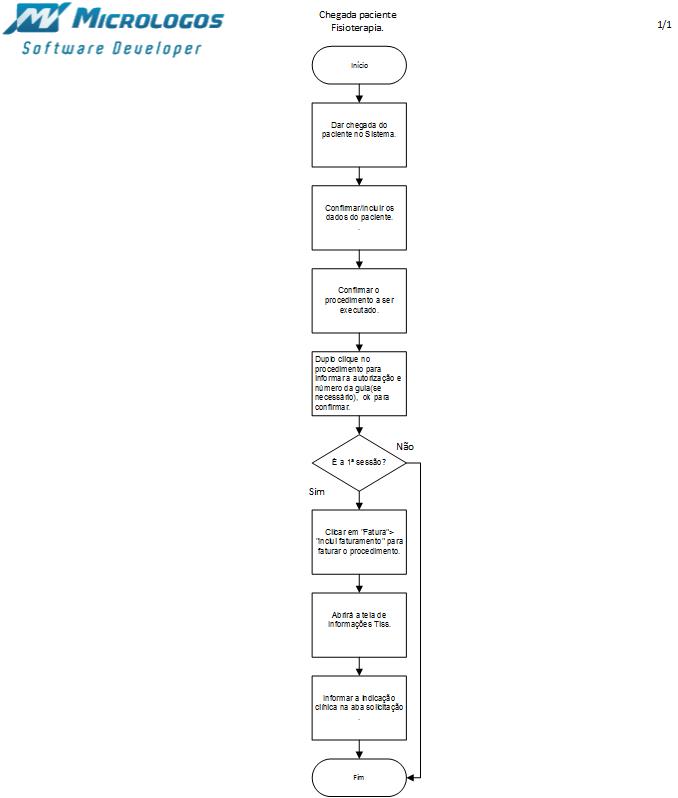 Fluxograma Chegada Paciente Fisioterapia Convênio