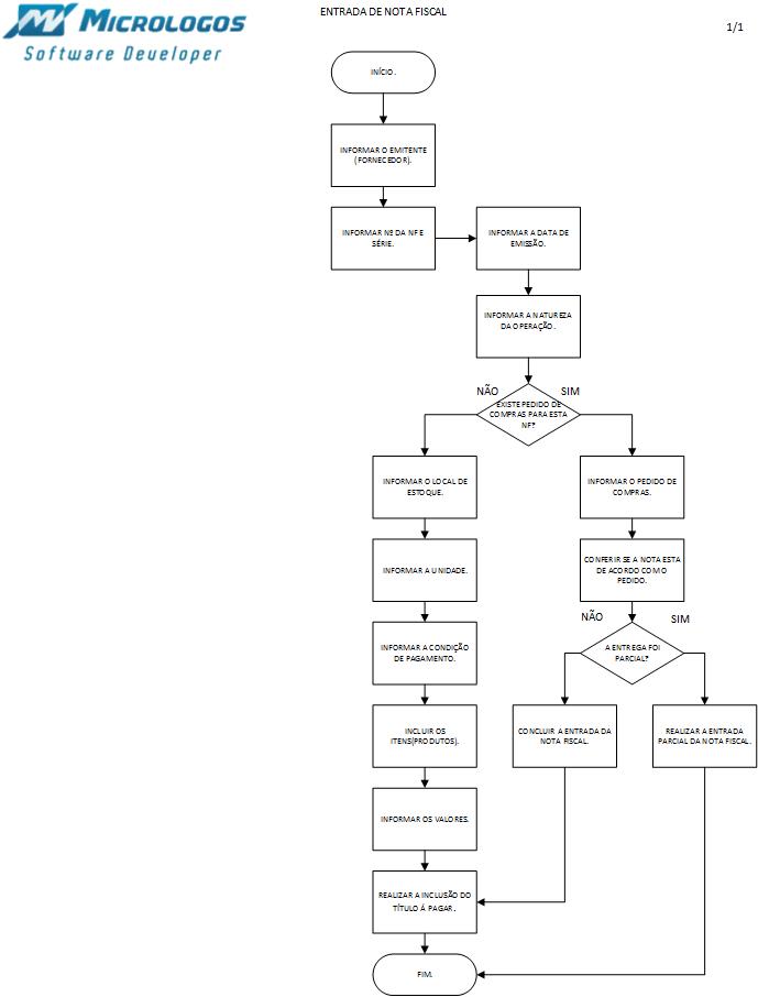 Fluxograma Entrada de Nota Fiscal