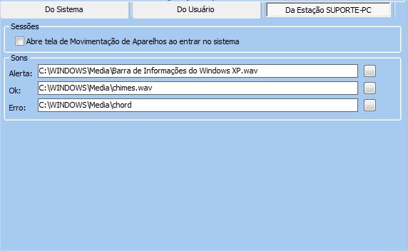 | Abre tela de movimentação de aparelho ao entrar no sistema | permite abrir a tela de movimentações de aparelho ao entrar no sistema, configuração por estações. |