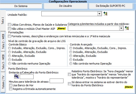 | Ponto Eletrônico | permite definir configurações do Ponto Eletrônico. |