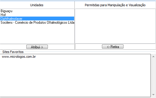 unidades selecionadas permitidas a manipular e visualizar as configurações operacionais.