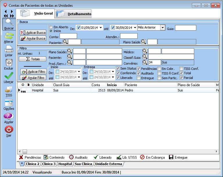 Clicar em TISS conferido para determinar que aquela conta já está ok para ser enviada ao SUS. (Lembrando que esse processo é igual tanto para o SUS quanto para convênio.)