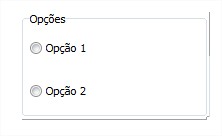 | Grupo de Opções | Permite inserir campo Grupo de Opções da Fichas de Dados para configurar o Grupo, botão direito do mouse Botão Propriedades do Grupo de Opções. |