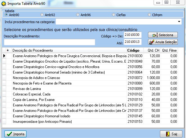 | Botão Opções> Importa Tabela> Amb90,92,96, Ciefas, Cbhpm | para essa funcionalidade é necessário que tenha a tabela disponível em sua máquina. |