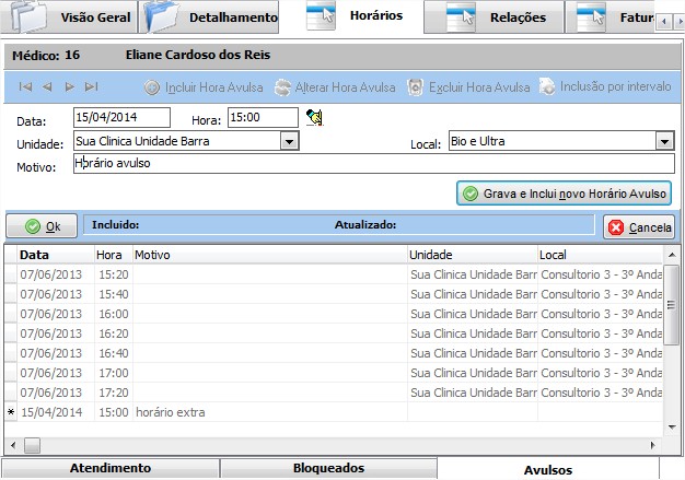 Feito isso, você terá definido 1 horário para esse dia, por exemplo 10:20. Se desejar incluir 10:40(exemplo), basta clicar no botão Grava e Inclui novo Horário Avulso.