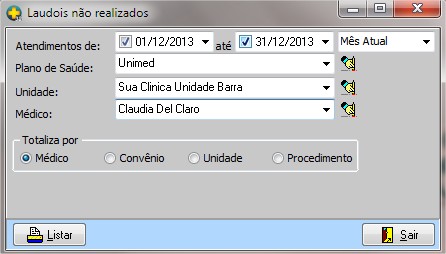 Atendimento de/até determina período dos laudos não realizados a serem listado no relatório.