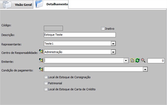| Local de Estoque de Consignação | Permite definir se o Estoque é local de consignados. |