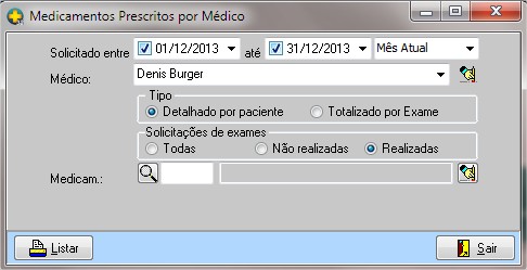 | Tipo | permite selecionar o relatório entre Detalhado por paciente ou Totalizado por exames. |