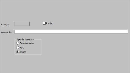 Tipo de ausência Permite definir se a ausência é por cancelamento, falta ou ambos.