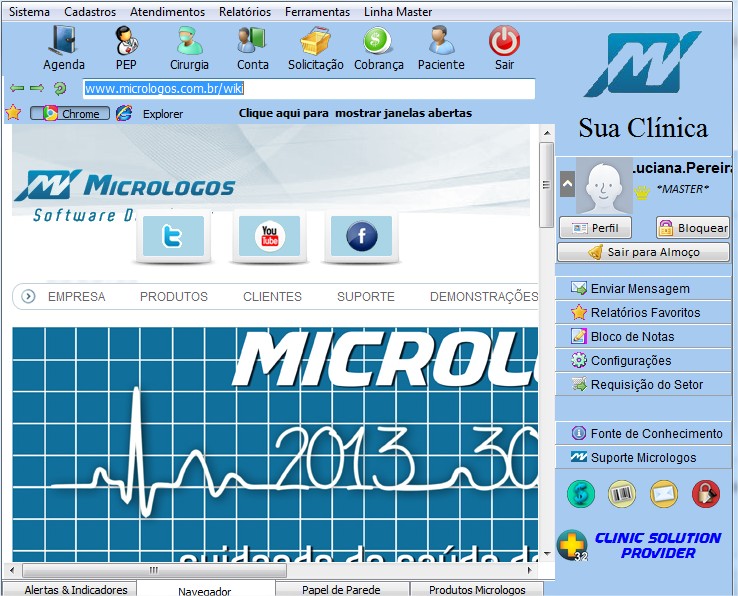- O "browser" aparecerá na parte central da tela principal do sistema para que seja permitido o acesso , otimiza o acesso à internet