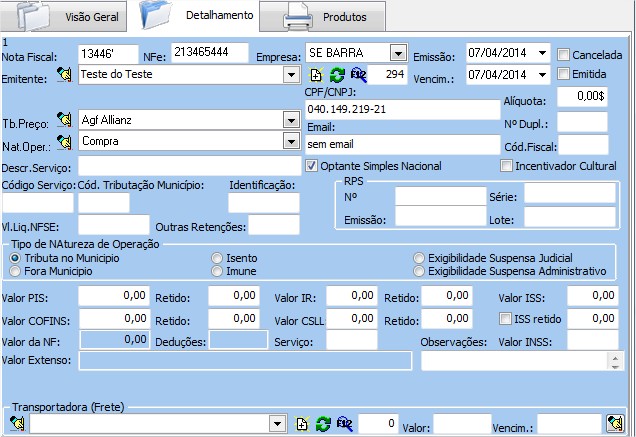 - Registro de Notas Fiscais referente aos títulos a receber.