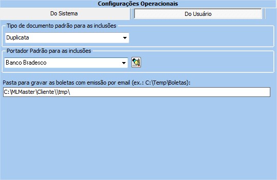 Pasta para gravar as boletas com emissão por email (ex.C:\Temp\ Boletas): Permite definir o caminho da pasta para gravar as boletas emitidas por e-mail.