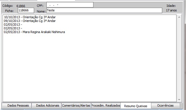 | Histórico resumido das queixas que foram escritos nos atendimentos dos médicos ( PEP ). Essa opção aparecerá ou não de acordo com o perfil dele no Security Master Advanced.