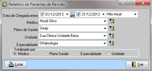 Totalizado por permite selecionar a ordenação do relatório.