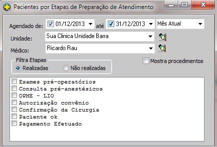 Opções para serem visualizadas no relatório São as etapas que o usuário deseja filtrar (pré-configuradas em Agenda - Operacional - do Sistema - Tela 4).
