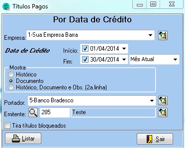 | Tira Títulos Bloqueados | permite tirar do relatório Títulos bloqueados. |