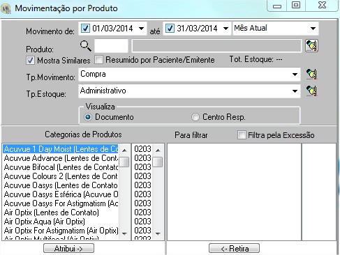 Movimento de / Até Permite informar o periodo que deseja visualizar a movimentação do Produto.