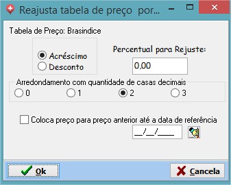 - Essa opção recalculará (para alterar) os preços de todos os itens da tabela de preço utilizando o percentual informado