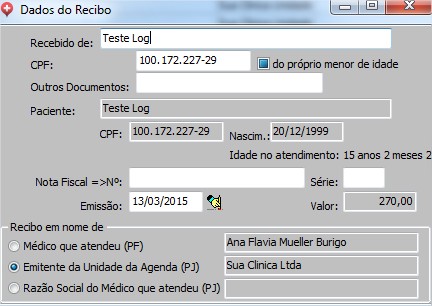 Obs.: Para o DMed o CPF de dependente pode ir em branco (no caso do menor não ter CPF próprio) ou preenchido que o CPF dele. Por isso no recibo deve ser informado se o CPF é do próprio paciente menor de idade.