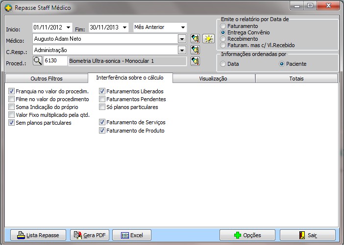 - Visualização repasse Staff Médico.
