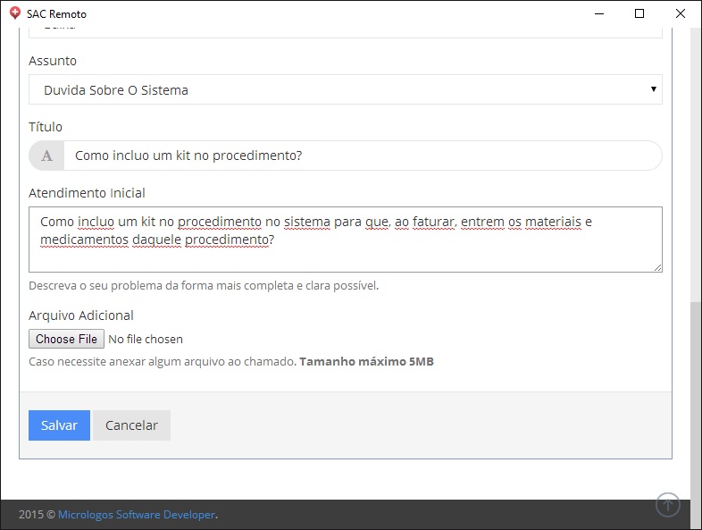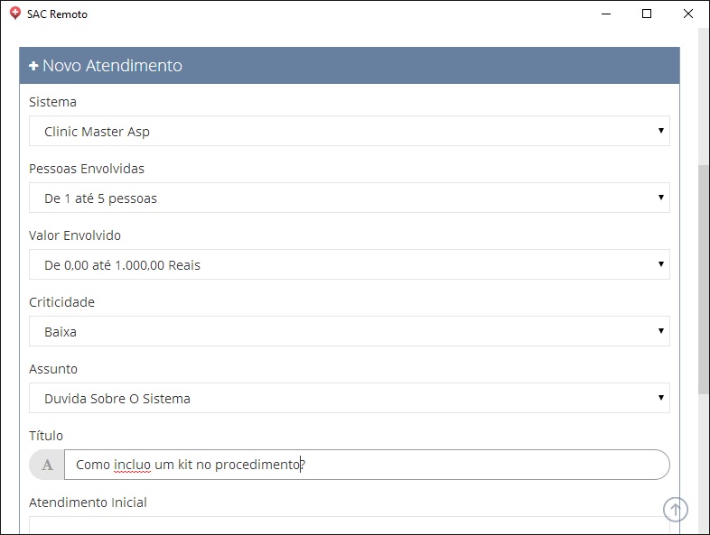 | Dê um título ao seu atendimento, um que facilite sua busca por ele depois; | |