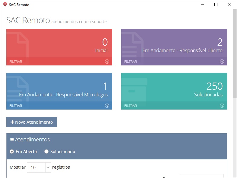 | Obs | Juntamente à criação do(s) facilitador(es) é necessário solicitar ao suporte a configuração do SAC Remoto, feito isso entre em contato com o suporte para que ensine a utilizar o SAC Remoto. |