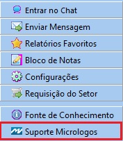 | Para incluir um novo atendimento, clique em "Suporte Micrologos" no menu lateral direito do sistema. |