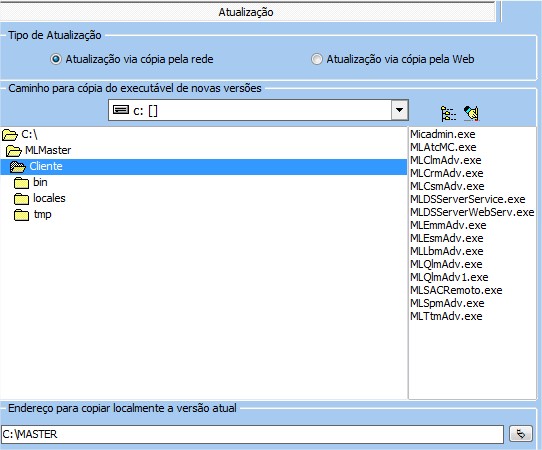 | Caminho para cópia do executável de novas versões | Permite definir caminho do executável de novas versões. |