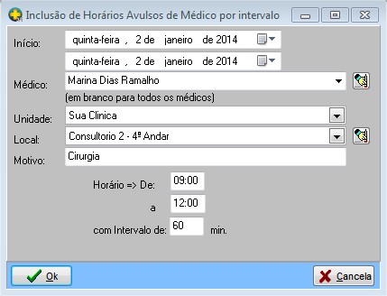 - Médico: Médico que será incluído a hora/data avulsa.