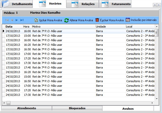 - Unidade: Unidade que o médico atenderá nessa hora/data avulsa.
