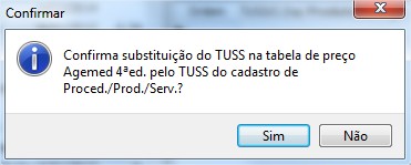 - Substitui o código TUSS na tabela de preço, pelo TUSS de Proced./Prod./ Serv.