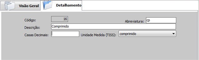 Unidade Medida (TISS) A unidade deve ser associada à uma unidade da tabela padronizada pela ANS que será utilizada na geração de arquivos XML par ao TISS.