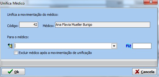 | Unifica Medico | Permite unificar o Médico Selecionado para Médico que deseja, basta informar para qual Médico deseja unificar. |