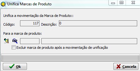 | Unifica a movimentação | Permite unificar a Marca de Produto Selecionada para a Marca de Produto que deseja, basta informar para qual Marca de Produto deseja unificar. |