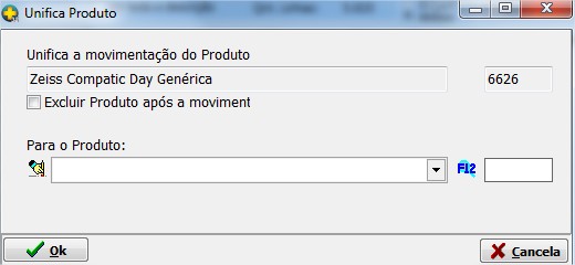 | Unifica a movimentação | Permite unificar o Produto Selecionado para o Produto que deseja, basta informar para qual Produto deseja unificar. |
