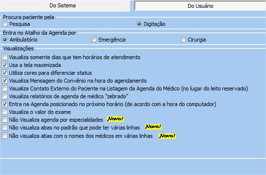 Obs. importante ressaltar que estas opções estão diretamente ligadas à alterações no USUÁRIO selecionado em "Usuário Configuração" e qualquer alteração nessas opções implicará na mudança exclusiva das configurações desse usuário.