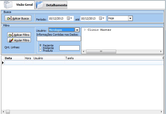 | Produto | Pesquisa Baseada no Produto. | Data | Pesquisa Baseada na data. | Hora | Pesquisa Baseada na Hora. | Usuário | Pesquisa Baseada no usuário. | Operação | Pesquisa Baseada na Operação. | Tarefa | Pesquisa Baseada na tarefa.