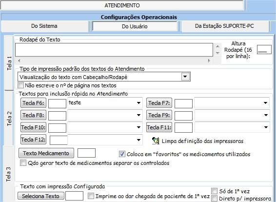 | Operacional - Do Atendimento - Do Usuário - Tela 1 - grupo prescrição (as 3 configurações) | |