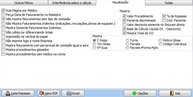 | Inicio/Fim | determina o período do repasse médico que será visualizado no relatório. |