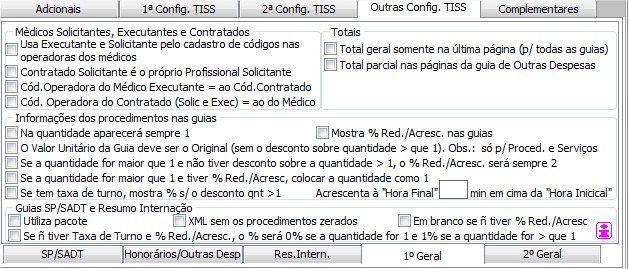 Outras Config Tiss / 3ª Geral - Guias SP/SADT e honorário