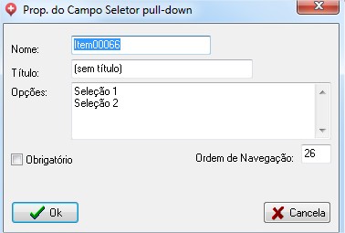 | Obrigatório | Permite colocar campo como obrigatório o preenchimento. |
