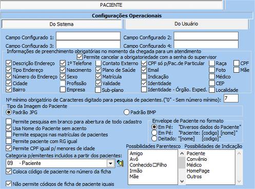 Configurações Operacionais