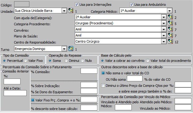 - Categoria Médico: Informe a categoria de médico para o tipo de comissionamento.