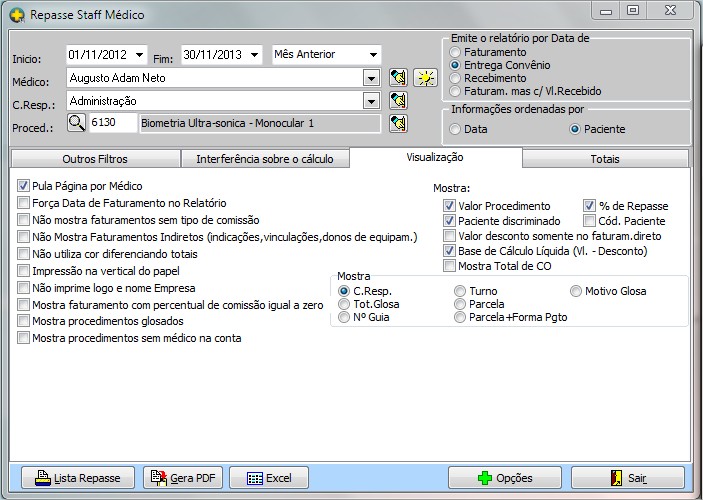 - Inicio/Fim- Determina o período do repasse médico que será visualizado no relatório.