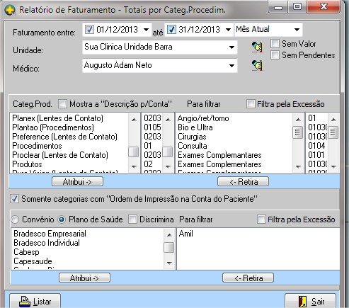 - Sem valor: se marcada essa opção será visualizado na listagem do relatório procedimentos sem valor.