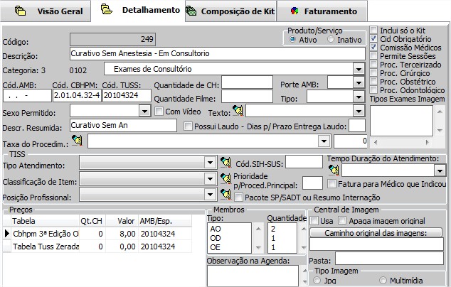 caso o procedimento tenha kit, marcar opção para incluir somente o Kit, não inclui procedimento.