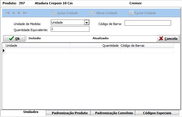 | Unidade de Medida | Vinculada no produto incluído. |