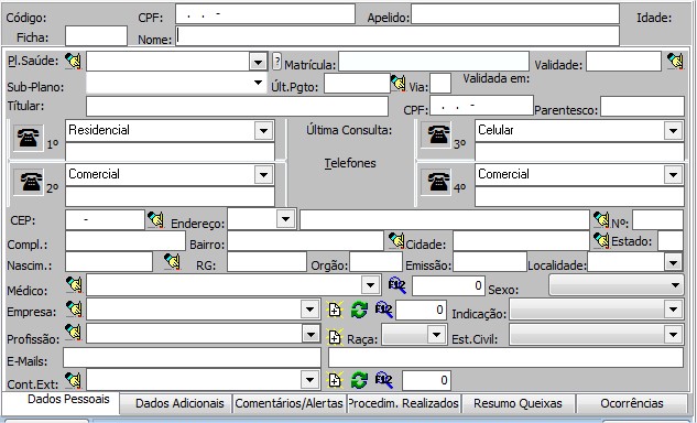 São 2 campos que podem ser configurados para que sejam colocadas informações específicas que a clínica utiliza. O título desses campos podem ser definidos nas configurações do sistema.